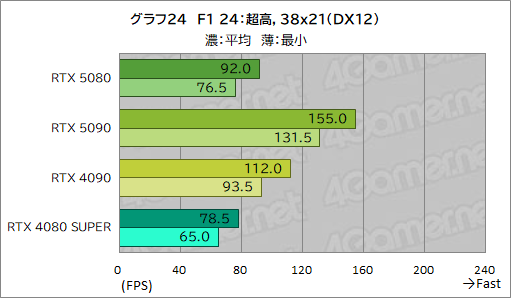 RTX 5090との格差はかなり大きい。RTX 4080 SUPERとの差は10%強