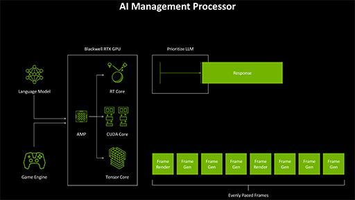 しかしBlackwellになると,ニューラルシェーダの導入によってTensor Coreを使う曲面が増える。そこで,推論アクセラレータの交通整理が行える独自のGPUタスクスケジューラとして,AMPを実装したのだろう。
