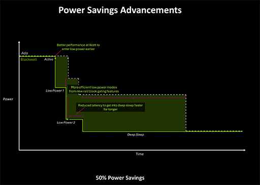 こうした統合制御により,Blackwellでは,ディープスリープ状態への移行が,Ada世代と比較して10倍も高速になったそうだ。