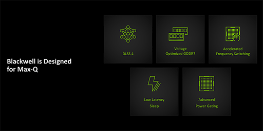 NVIDIAはBlackwellに,ノートPC向けGPUで使われている「Max-Q Technology」(以下,Max-Q)に相当する制御を,デスクトップPC向けGPUにも導入したとアピールしている。