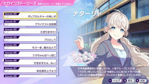 こちらは,小説・アニメの世界設定に基づいた話が楽しめる「ヒロインストーリーズ」。ひとつのチャプターが短く設定されているので,気軽に視聴できる。事務所経営の合間にぜひ楽しんでほしいコンテンツだ
