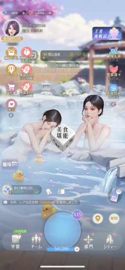 「学習」で自身のスキルを上げ,「チーム」で仲間や装備品を強化したら,「シティー」にあるメニューで腕試しをしたり,先のストーリーを見に行ったりできる。