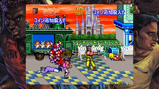 敵の個性がシステムとアニメーションで表現されているのも興味深いところだ。2面のピエロは身が軽いため,投げ飛ばしてもノーダメージで着地してしまう。ボスはダウン攻撃に耐性を持ち,1面のボスは這って逃げ,2面ボスは蹴りで反撃し,5面ボスは義足の膝に仕込んだ銛を発射する……とそれぞれに異なる技を繰り出す。一律ではない個性の表現がテクノスジャパンの持ち味だったようにも思える。