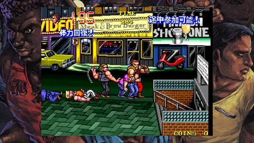 前年稼働のダブルドラゴンや2年後に稼働するコンバットライブスと同様,敵が攻撃を食らった姿勢によって多彩な技が発動するというお得意のフィーチャーが実装されており,それぞれの時系列順に見ていくと興味深い。