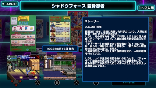 テクノスジャパンのゲームといえばダブルドラゴンやくにおくんシリーズの移植や復刻が多いが,本作にはそれ以外の作品も多く収録されている。お得意のベルトスクロールアクションやスポーツものはもちろん,同社には珍しいパーティーゲームや,初復刻タイトルなど,テクノスジャパンをより深く知りたい人におススメのソフトといえるだろう。
