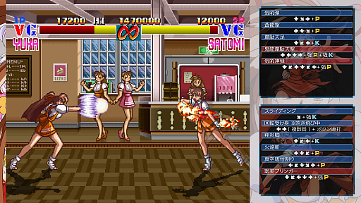 便利機能については,定番のセーブ/ロードとリワインド(巻き戻し),そして「スチーム・ハーツ」ではステージを越えての武装の持越し,「アドヴァンスト ヴァリアブル・ジオ」では,超必殺技のコマンド入力をワンボタンで行えるようになった。