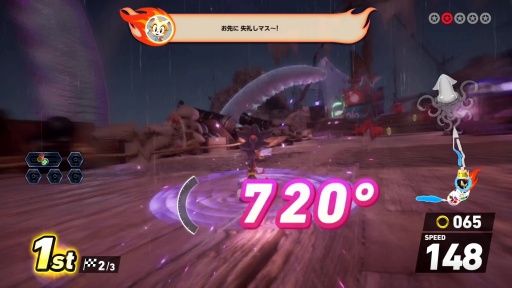 レースは1ラウンド,3ラップなんですけど,2ラップ目の異世界を走ったあとに最初のコースに戻ってくると,どうしても目新しさに欠けてしまう。そこで,イレギュラーなことが発生する「フィーバーゲート」というギミックを入れたり,アイテムの配置やショートカットできる場所に変化をつけたりしました。