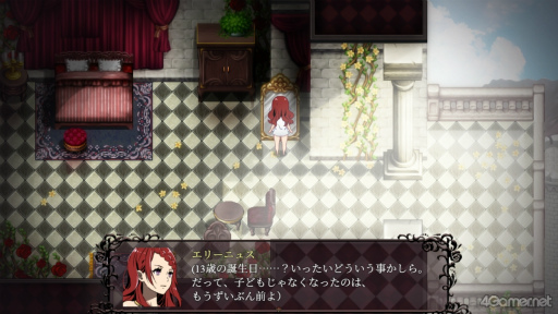 物語は,主人公である王女「エリーニュス」(名前変更可能)が城の自室で目覚めるところから始まる。起こしにきたメイドの「デニス」によると,今日は彼女の13歳の誕生日だという。