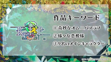 2023年6月29日に発売した『9 R.I.P.』の完全続編。様々な奇妙な世界、そして、怪異な彼らと再び紡ぐ、オムニバスラブストーリー。共に在ることを願う愛しい者との恋の行方は――。
