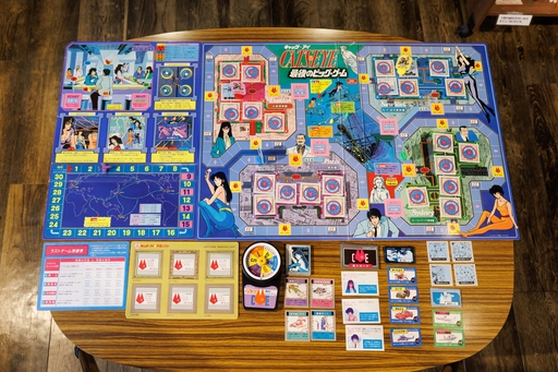 ということで,まずは今回もパッケージから見ていきますが,主人公の来生三姉妹の中でも特に中心となる来生 瞳の横顔が大きく描かれた,とにかくセクシーなものになっています。このボードゲームの対象年齢は「9歳〜大人向」となっていますが,9歳の誕生日にこれを親にお願いしたら果たして買ってくれたか……? 却下されそうな気がしないでもないですが,箱絵のセクシーさだけでなく,ゲーム内容の方も原作の世界観を見事に表現した秀逸なものとなっていますので,詳しく紹介していきましょう。