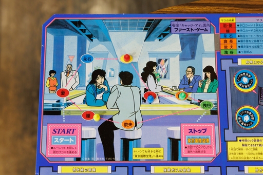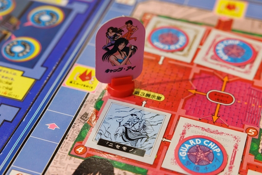 それにしても,喫茶店が舞台のボードゲームというだけですでに斬新。なぜこの場面がチョイスされているかですが,原作漫画では,キャッツ特捜班の刑事たちが,この店で来生三姉妹にうっかり警備情報を漏らすのがお約束だったからです。