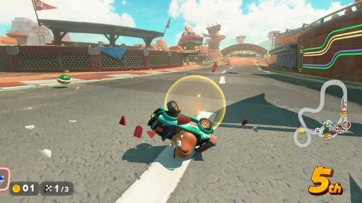 なおアイテムは,ゲットとともに自動的にカートの後部に“ぶら下がる”仕様になっている。「マリオカート8 デラックス」のアイテムゲット即ぶら下げみたいな操作の感覚が残っていて,間違ってアイテムを使っちゃった……なんてことが起きがちなので,慣れるまでは要注意だ。