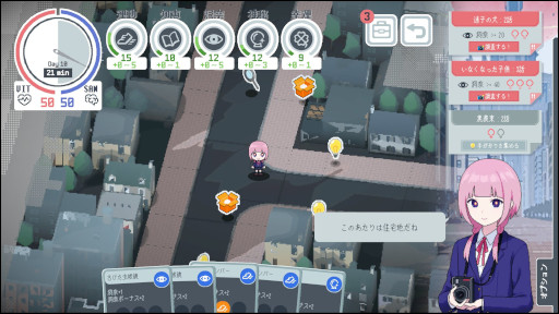 調査パートでは、街を歩き回り、各地で発生しているイベントを見つけることで調査を進めていきます。