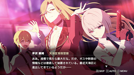 豊富な資金と人員を背景に、近年急速に勢力を拡大した天海区最大の組織。背後には、天海区内の都市開発を中心に巨大なシェアを誇る皇財閥の存在がある。