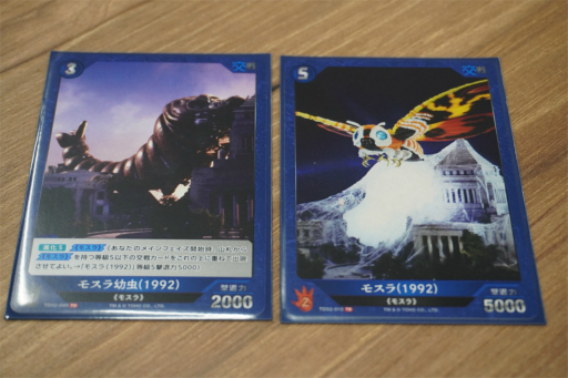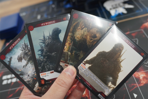 ![]() 「ゴジラ-1.0」は赤色,「平成・VSシリーズ」には青色が割り振られていた。色で世代が分けられているわけではなく,今後は各色にさまざまな作品のカードが登場する予定だ |