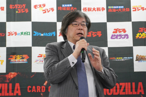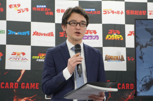 東宝でゴジラ関連のIP事業を担当する山崎倫明氏によると,70周年を迎えた「ゴジラ」について,より幅広いコンテンツ展開を模索するなかで,TCGというジャンルに行き着いたとのこと。ブシロードや遊宝洞との連携もかなり力強く行っているようで,本作を新たな挑戦として捉えているようだ。