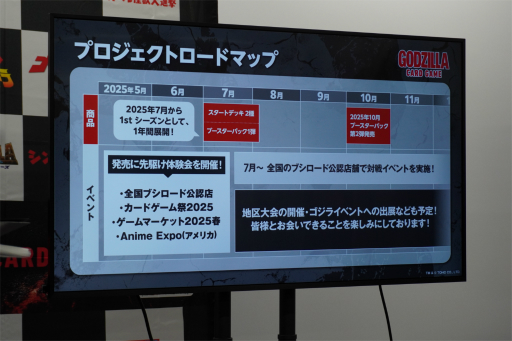 本作の商品展開は2025年7月にスタートし,10月にはブースターパック第2弾が発売される。発売前には各種の体験イベントが行われ,発売後にも地域大会の開催,ゴジラ関連イベントへの出展など,さまざまな形で展開が続けられるとのこと。