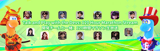 初回ゲームプレイテスト期間中、開発チームがSteamや公式YouTubeチャンネルで「開発チームと一緒:120時間マラソン生放送」を実施します!『星のパーティータイム』を共に楽しみながら、宇宙の秘密を解き明かしましょう!開発チームメンバーはそれぞれ異なる分野を担当していますが、生放送では自身の専門外の情報も共有し、ゲーム全体の魅力を余すところなくお届けします。毎日18時間の英語配信と6時間の日本語配信を予定していますので、ご興味のある方はぜひお見逃しなく!