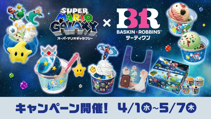 「スーパーマリオギャラクシー」×「サーティワン」コラボ,4月1日〜5月7日に開催。作品の世界観を再現した期間限定フレーバーが登場