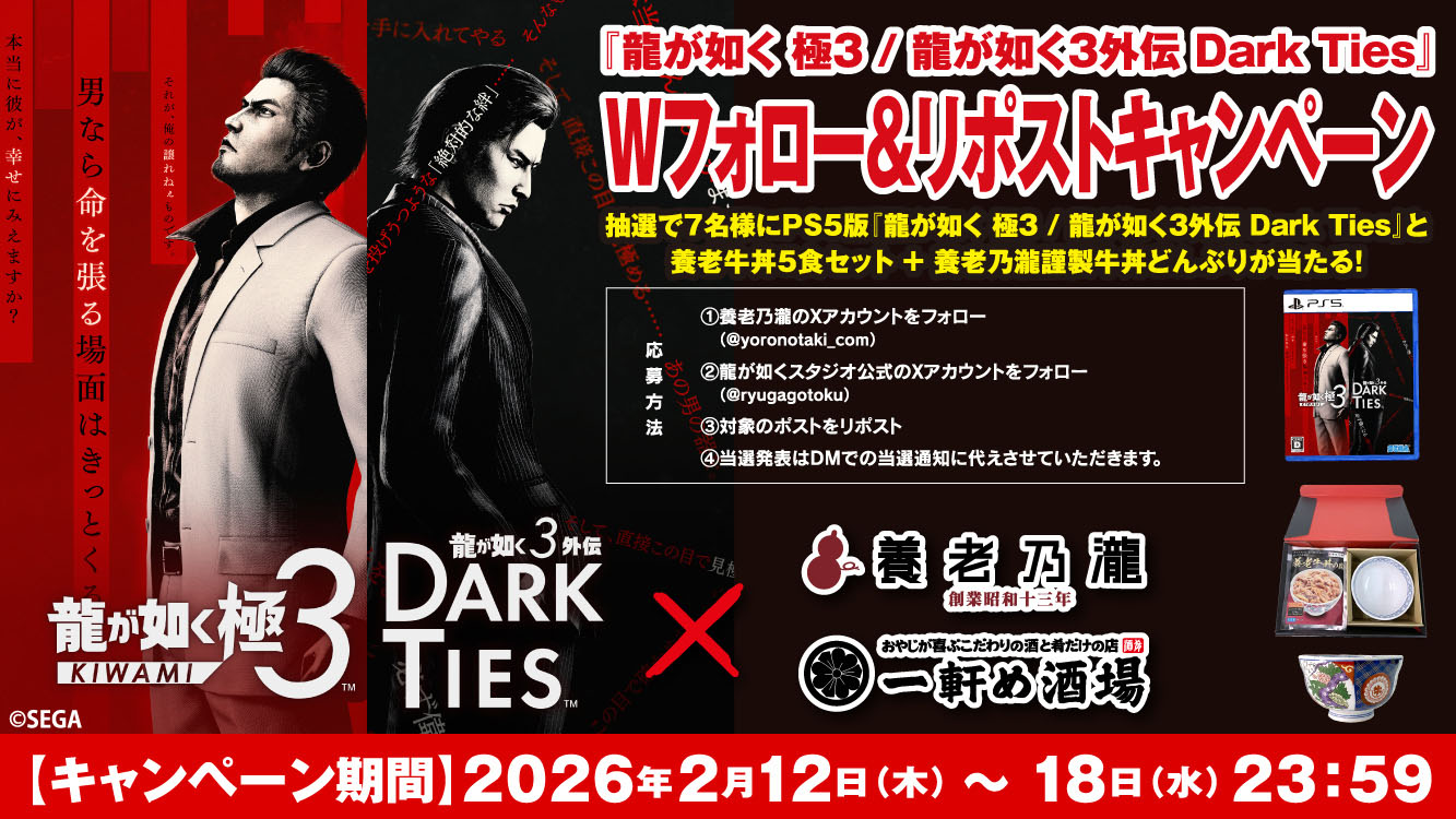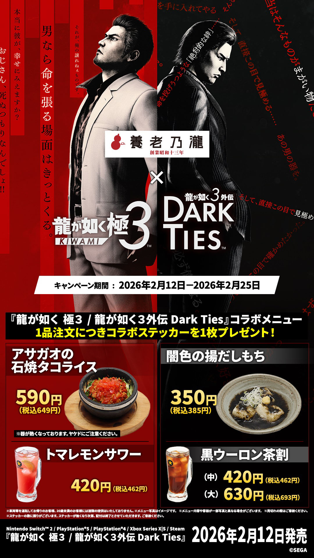 「龍が如く 極3 / 龍が如く3外伝 Dark Ties」,養老乃瀧と一軒め酒場でコラボメニューの発売を開始