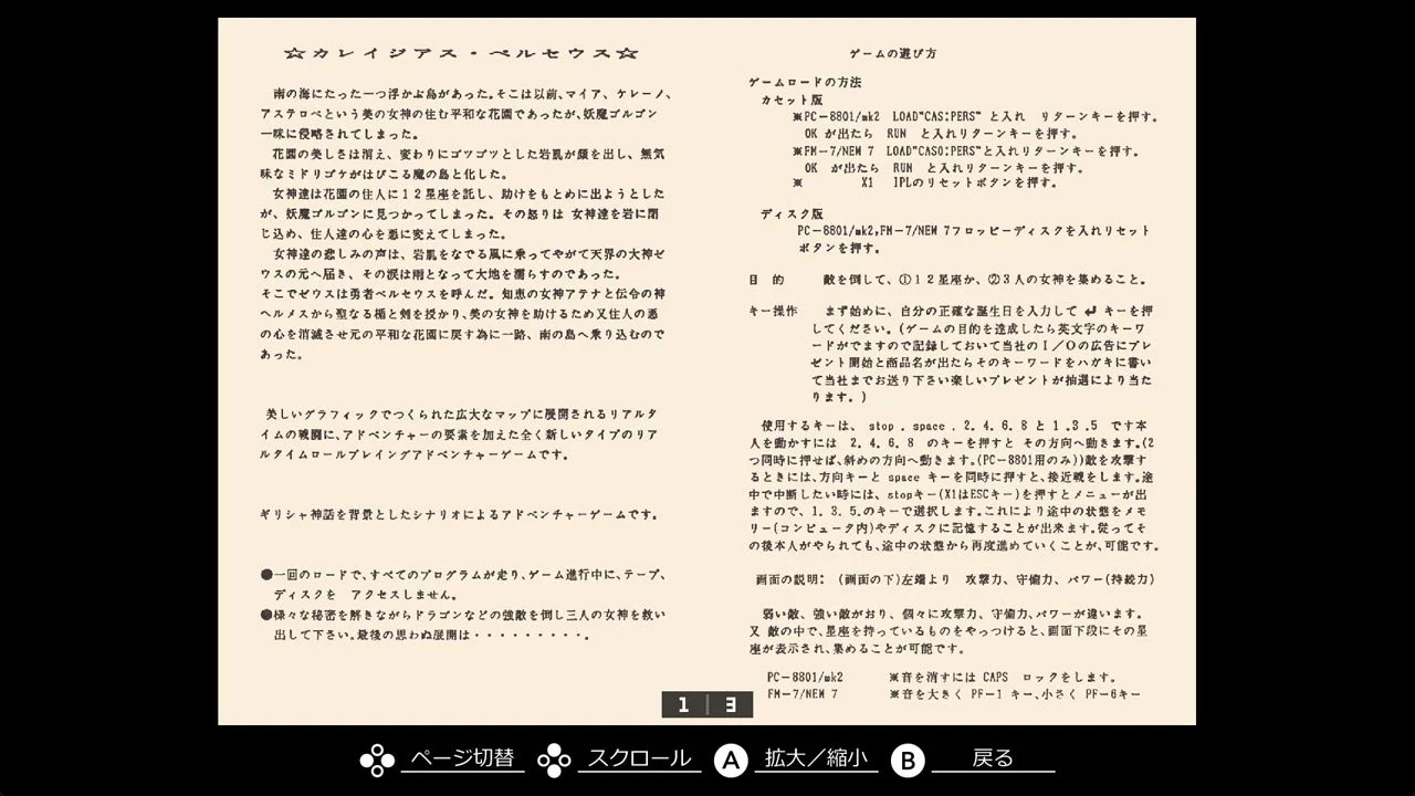 「EGGコンソール カレイジアスペルセウス PC-8801」本日配信。魔の島を舞台に美の女神を救うために冒険するアクションRPG