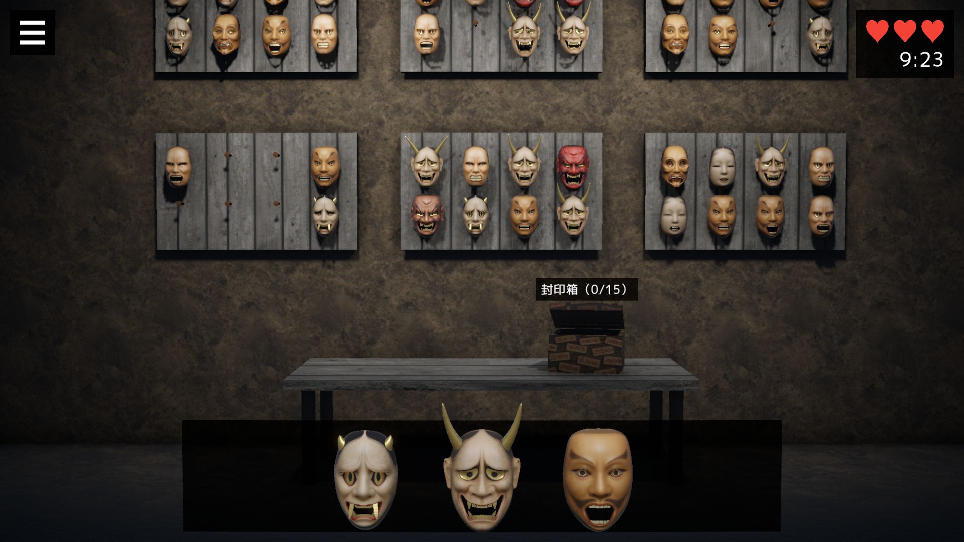 異変探し×整理整頓のホラーゲーム「呪面」,Steamストアページを公開。壁一面の大量のお面から「異変の起きる呪われたお面」を見つけ出そう