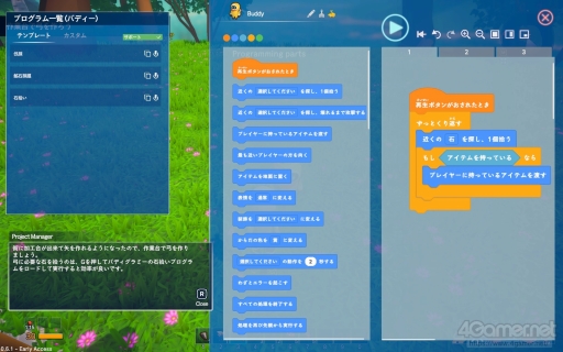 2024年6月現在,アーリーアクセス中のオープンワールド・サバイバルクラフトゲーム。ある意味で定番と呼べるタイプのゲームだが,プログラミングすることで自律的な行動をとる相棒グラミーの存在が大きな特徴となる。