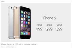 Apple Storeの日本語公式サイトにはすでにiPhone 6とiPhone 6 Plusのページが公開されていて,SIMフリー版の価格が確認できるようになっている。その価格(※税別)は,iPhone 6は16GBモデルが6万7800円,64GBモデルが7万9800円,128GBモデルが8万9800円。iPhone 6 Plusは,16GBモデルが7万9800円,64GBモデルが8万9800円,128GBモデルが9万9800円となっていた。