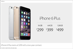 カラーバリエーションはiPhone 5sと同じ3種類(スペースグレイ/ゴールド/シルバー)で,容量は各色で16/64/128GBの3モデルが用意される。通信キャリアとの2年契約時における価格は,iPhone 6が199/299/399ドルで,iPhone 6 Plusは299/399/499ドルだ。