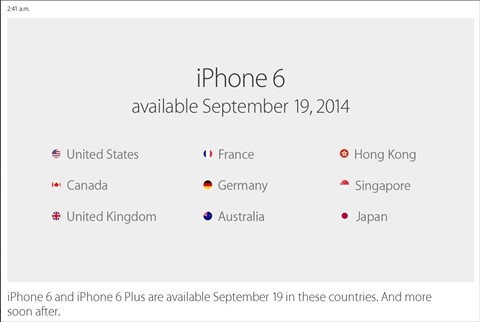 日本でiPhoneを取り扱っているNTTドコモ,KDDI,ソフトバンクモバイルからはそれぞれ,iPhone6/6 Plusの予約に関するプレスリリースが9月10日に発表された。いずれも9月12日16:00から予約受付を開始する。NTTドコモは「9月19日から販売開始するドコモ販売店の店頭およびドコモホームページ」で,ソフトバンクモバイルは「iPhone取扱店およびソフトバンクオンラインショップ」で予約受付を行うとのこと。KDDIでは予約方法に関する具体的な情報はまだ発表されていない。