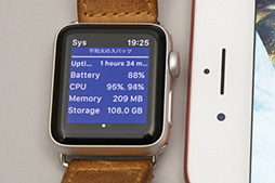 iPhone 7 PlusでWorld of Tanks Blitzを長時間プレイし続けても,高温になることでSoCの動作クロックが落ちるサーマルスロットリングに遭遇する様子がない。そこで,筆者所有の「Apple Watch Series 2」(以下,Apple Watch)と,Apple Watchでのモニタリングに対応するiOS用のシステム監視アプリ「System Guard」を使用して,動作中のCPU使用率をチェックしてみることにした。