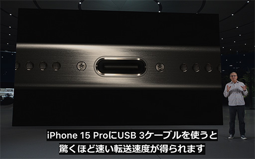 Lightningに変わり,USB Type-Cを採用する。転送速度は最大10Gbpsなので「驚くほど速い」とは言いにくい