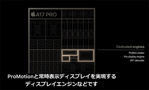 このほかにも,A17 Proでは,YouTubeなどが対応している最新の高画質ビデオコーデック「AV1」のハードウェアデコードも可能とのことだ。