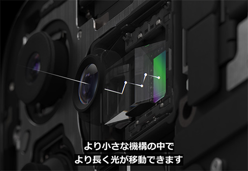カメラユニット内で光を4回曲げることで,120mmの焦点距離を実現した