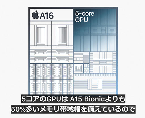 GPUが5コア版のA16 Bionicを採用する