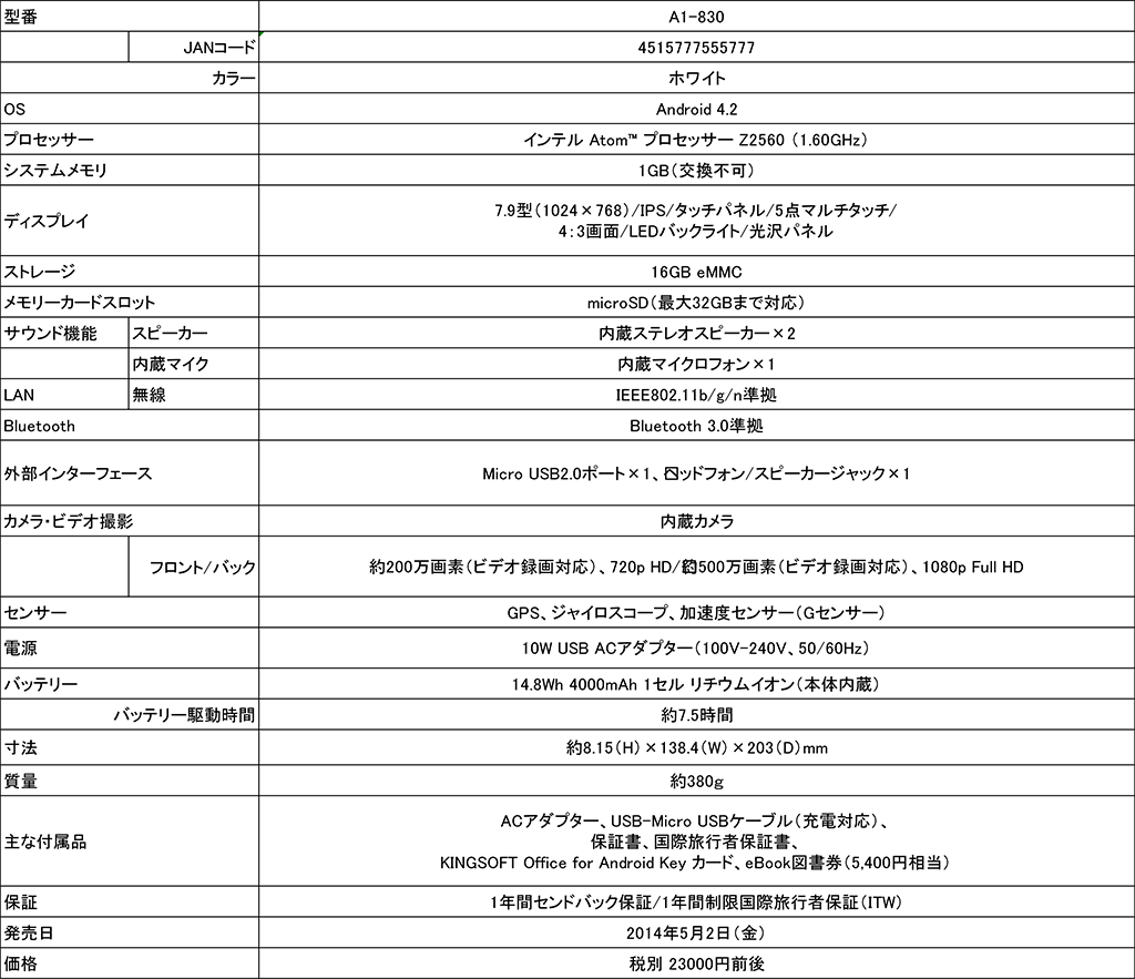 Acerから漫画閲覧を重視したAndroidタブレット。SoCにAtom Z2560採用