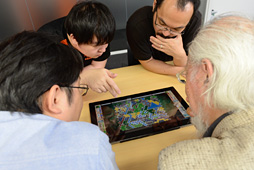 鈴木先生も大いに納得のプレイ感覚だったようで,ゲーム終了後もしきりに褒めるとともに,「アプリとボードゲームで互いに市場を潰し合う関係にはならないだろう。むしろ,もともとボードゲームを買う習慣のある人は,アプリで遊んで気に入ればボードゲームを買うだろうし,元のボードゲームが好きならアプリも買って普段から練習したくなる」と,ビジネスモデルが互いに衝突しないであろう点を高く評価していた。