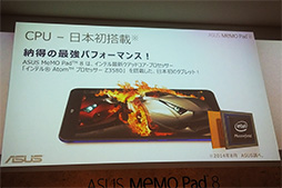 ここでは,イベントで説明された情報と実機の写真を中心に,MeMO Pad 8の特徴をレポートしよう。