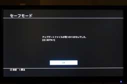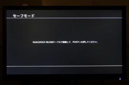 そして,この段階で,PS4の電源ボタンを7秒以上タッチしたままにする。触れた時点でビープ音が鳴り,5〜7秒程度でもう1回鳴ったら離していい。少し待てば,PS4が「セーフモード」と呼ばれる動作モードで起動するはずだ。