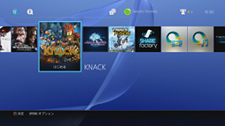 KNACKは,PS4初回版の特典であるコードを用いたダウンロード版だ。KNACKでもまずは,PS4のメインメニューからゲームが起動するまでの時間を「起動時間」とする。