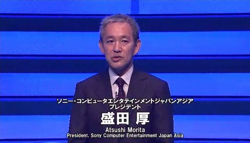オープニング映像が流れ,ソニー・コンピュータエンタテインメントジャパンアジアのプレジデント,盛田 厚氏が登壇しました。