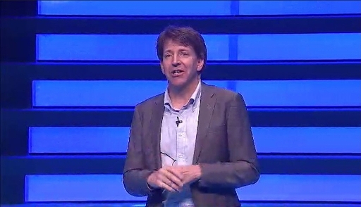 ユービーアイソフトのスティーブ・ミラー氏が登壇。「Assassin's Creed Unity」の映像を紹介しています。