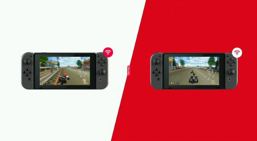 「画面は静電容量式のタッチパネル」であり,最大で8台のNintendo Switchをローカル通信でつないで遊べるとのこと。