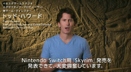 続いてはBethesda Game StudiosのTodd Howard(トッド・ハワード)氏が映像に登場。「The Elder Scrolls V: Skyrim」ですね。