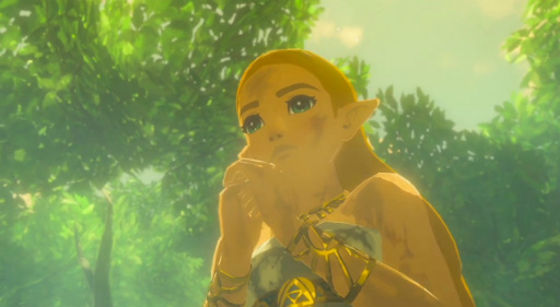 映像には「ゼルダの伝説 ブレス オブ ザ ワイルド」をプレイする代表取締役クリエイティブフェロー・宮本 茂氏の姿が。「これはグー」らしい。