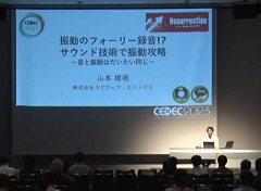 CEDEC 2023の最終日,「振動のフォーリー録音!? サウンド技術で振動攻略 〜音と振動はだいたい同じ〜」というセッションが行われた。サウンド技術が振動に応用できる理由と実例,課題をとおして,サウンド部が制作するコントローラ振動の要素が語られたセッションをレポートしよう。