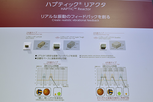 なお,2016年に発表となったHD振動世代のハプティックリアクタは,「2共振タイプ」と呼ばれるもので,出力振動周波数が150〜330Hzでした。それが2018年に発表となった新バージョンになると,振動周波数が100〜570Hzと,ダイナミックレンジが広げられています。