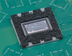 シールドに塗布されているTIMは,円形のゴムシートのように見えるが,製造工程段階では液状なのだそうだ。時間とともに硬化し,最終的にはゴムのような質感になるという。熱源となるチップ群は,ある程度高さのばらつきが想定されるが,このTIMならば塗布時は液状なので,そのばらつきを吸収できる。