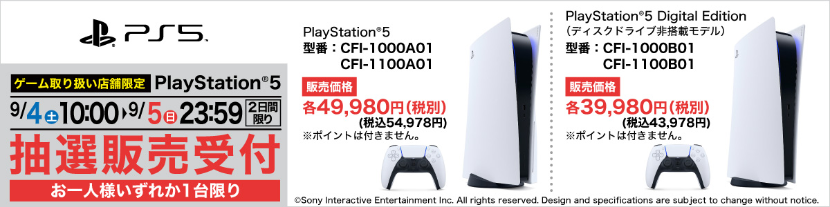ヤマダデンキがPS5の抽選販売申し込みを9月5日23:59まで受付中