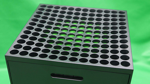 ȯɽÅö½é¡¤Xbox Series X¾åÉô¤ÎÎп§¤Ë¸÷¤ëÉôʬ¤Ï¡¤¥¹¥¤¥Ã¥Á¤Î¾õÂÖ¤òɽ¤¹LED¤Î¤è¤¦¤Ê¤â¤Î¤À¤È»×¤Ã¤Æ¤¤¤¿¤¬¡¤¼ÂºÝ¤ÏÎп§¤Î¥×¥é¥¹¥Á¥Ã¥¯¤À¤Ã¤¿¡£³ÑÅ٤ˤè¤Ã¤Æ¸«¤¨¤ëÈϰϤ¬ÊѲ½¤·¤Æ¡¤¤Ê¤«¤Ê¤«¥¥ì¥¤¤À